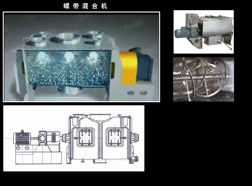 臥式螺帶混合機(jī)由U形容器、螺帶攪拌葉片和傳動(dòng)部件組成;螺帶狀葉片一般做成雙層或三層,外層螺旋將物料從兩側(cè)向中央?yún)R集,內(nèi)層螺旋將物料從中央向兩側(cè)輸送,形成對(duì)流混合。螺帶混合機(jī)對(duì)于粘性或有凝聚性的粉粒體的混合以及粉粒體中添加液體及糊狀物料的混合有良好的效果,筒蓋可做成全開式門,以便對(duì)于設(shè)備進(jìn)行清洗更換產(chǎn)品。